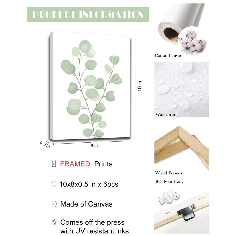 - [BOTANICAL WALL ART] - Botanical art is a popular style of modern interior design. This Eucalyptus plant wall art can bring fresh and fashionable elements to your room. While appreciating its unique beauty, it can also bring you calming.It will be the perfect choice for wall decor in anyone's room !