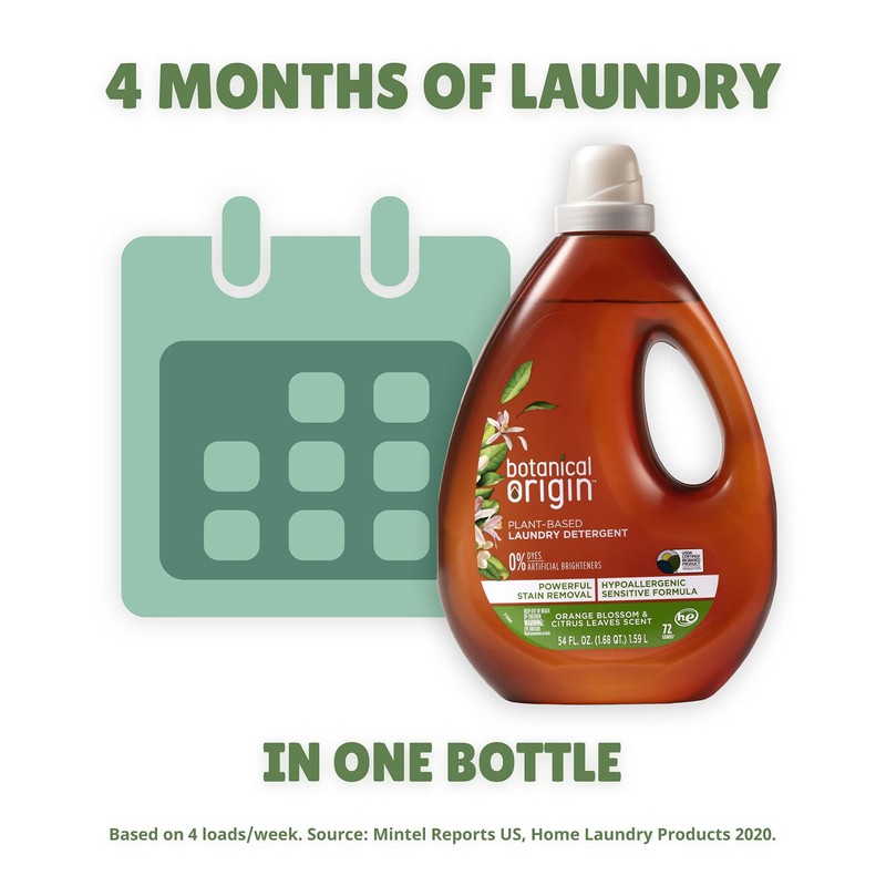 Botanical Origin Plant-based Laundry Detergent Orange Blossom and Citrus Leaves, 54 oz (72 loads)