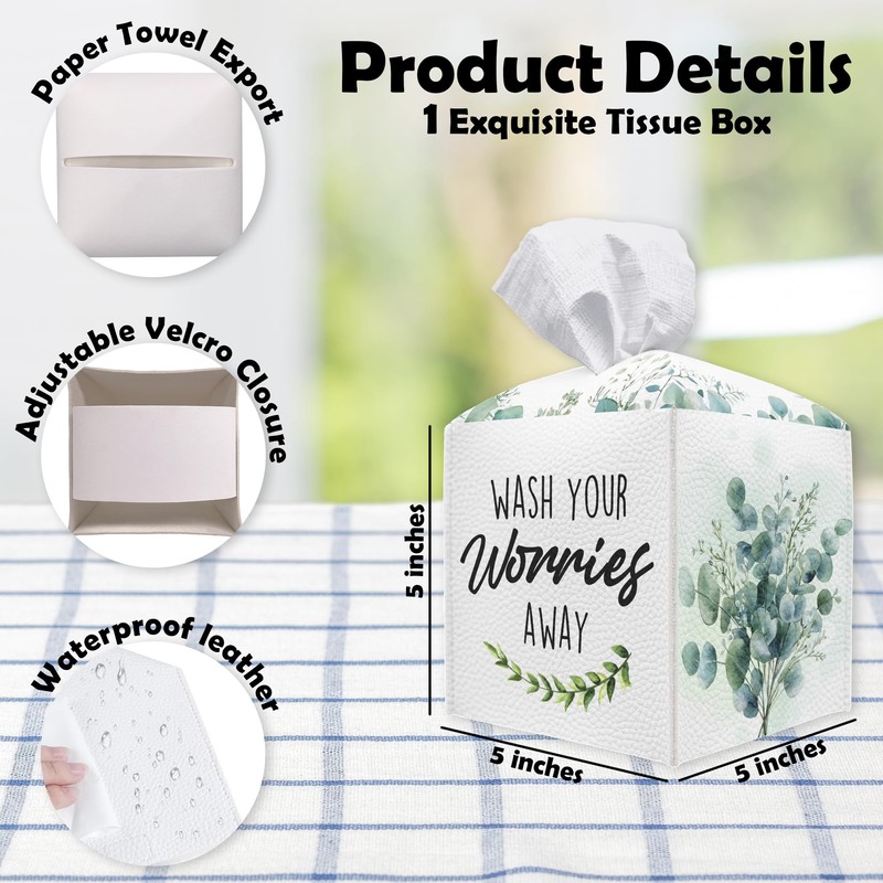 Botanical Tissue Box Cover Square - Wash Your Worries Away Leather Tissue Box Holder - Facial Paper Organizer Dispenser for Home Bathroom Toilets Desk Tabletop Supplies & Decoration - A01