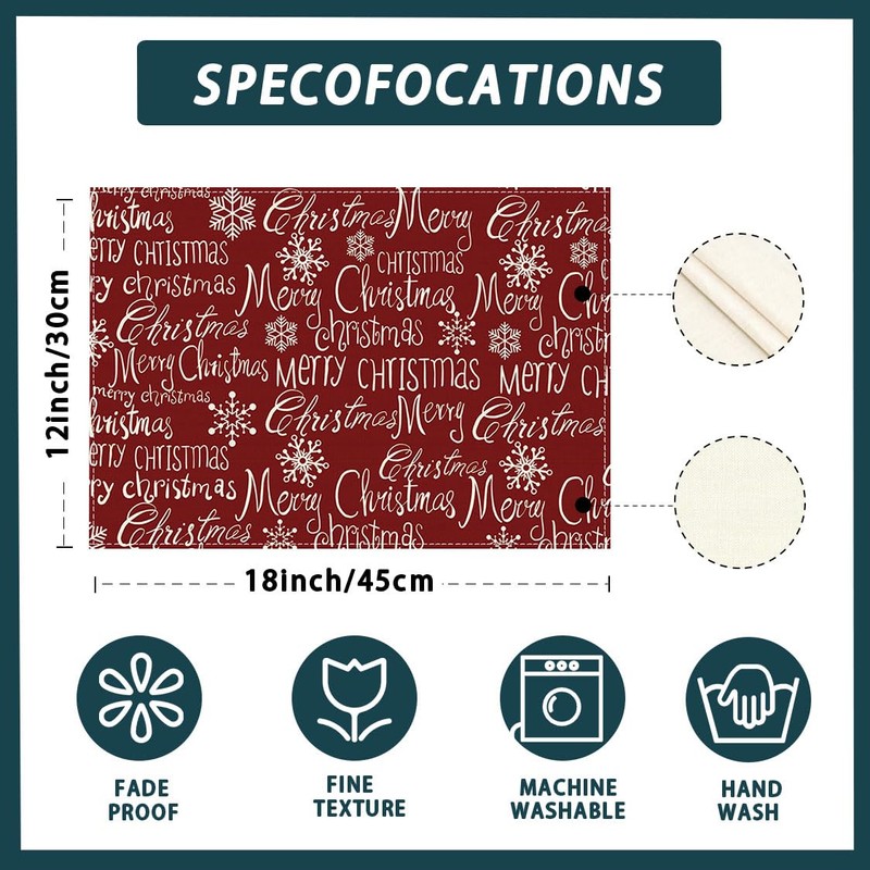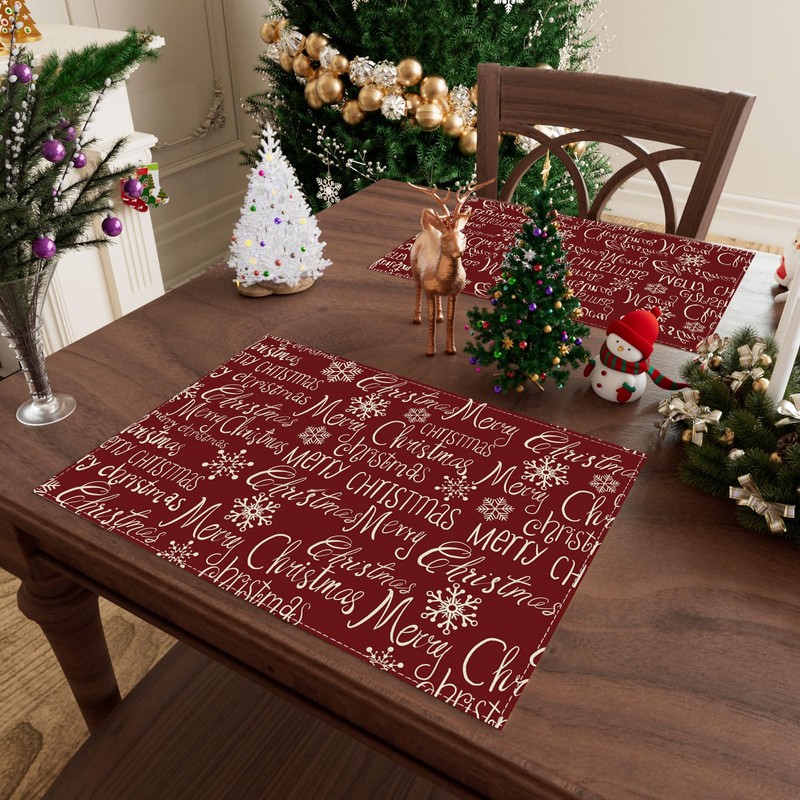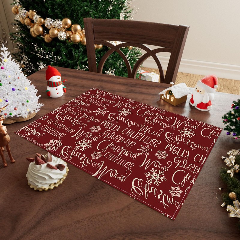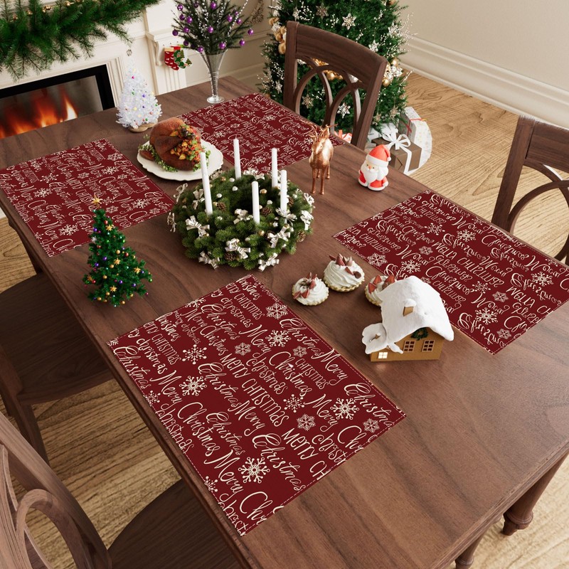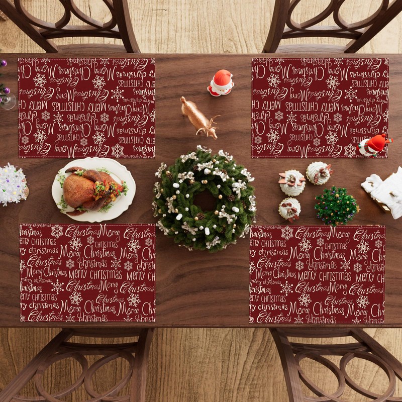 BOTB LIHM Red Letter Snowflakes Merry Christmas Winter Xmas Cloth Placemats Set of 4 Table Mats Table Decorations 12x18 Inch