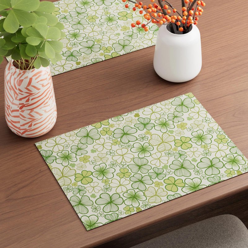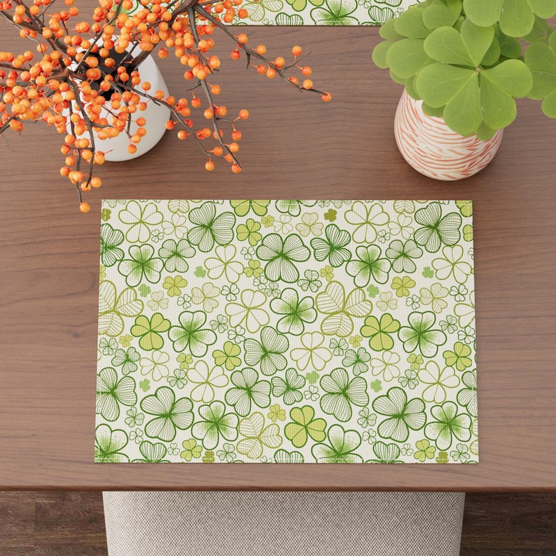 BOTB LIHM St. Patrick's Day Green Shamrocks Clovers Placemats Set of 4 Table Mats Table Decorations 12x18 Inch