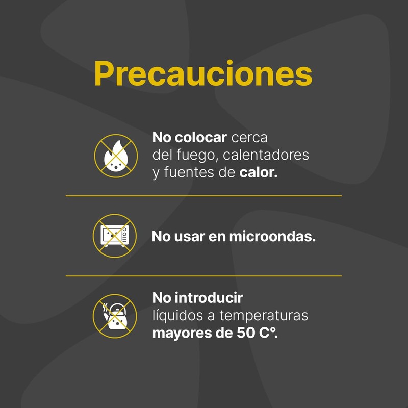 - Advertencia: No apto para calentar en microondas. Se recomienda no calentar.
