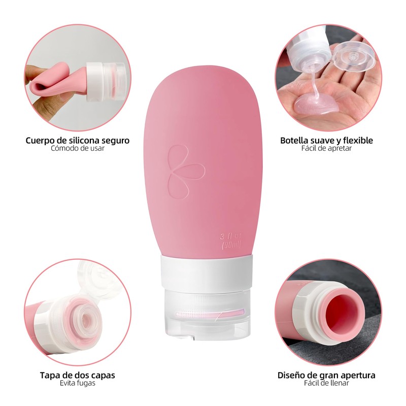 Botellas de Viaje Recargable, Contenedores de Silicona Reutilizable a Prueba de Fugas, con etiqueta botellas de viaje portátil, Recipientes de Viaje Exprimibles sin BPA para Champú, loción, Espray