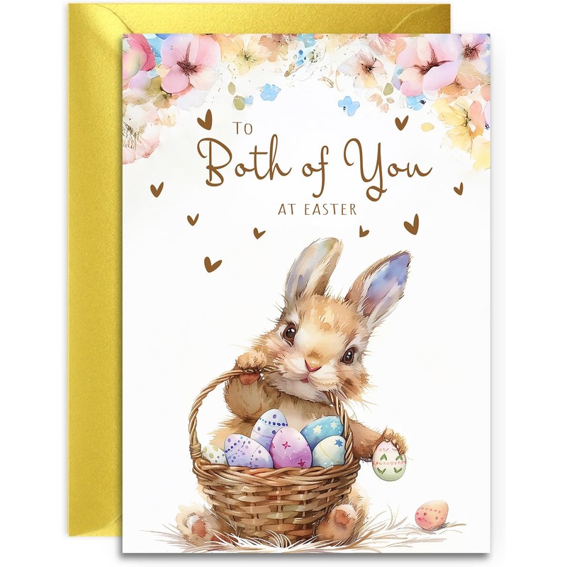- CHARMING BOTH OF YOU EASTER CARD ⭐ Delightful watercolour illustration featuring an adorable bunny holding a woven basket filled with beautifully decorated Easter eggs⭐ Click the second image for the text inside the card.