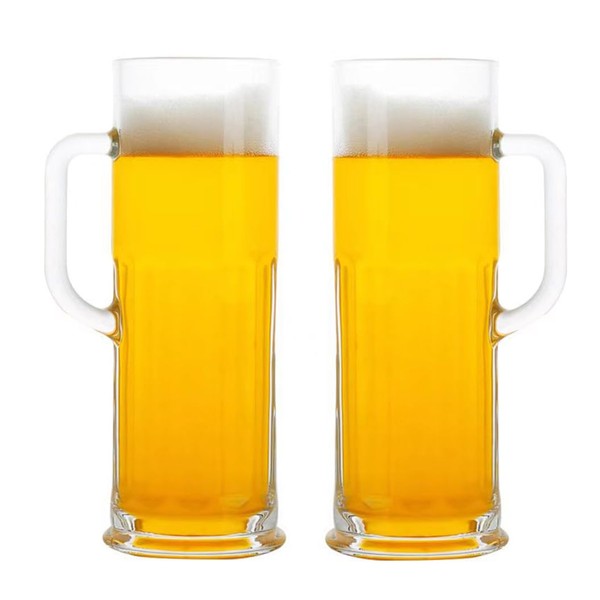 BothEarn Long Beer Mug Set of 2, 21 oz Heavy British Pub Thick Glass with Handle - Stein Cup for Beer Lover