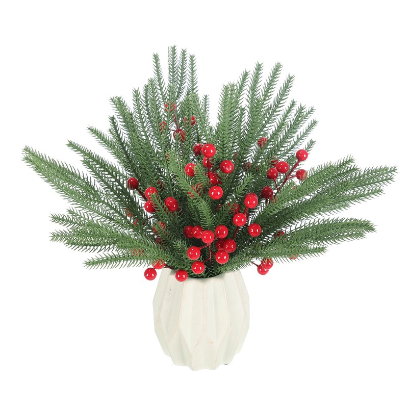 - Variety Pack: Get 50 pieces of Christmas greenery, including 30pcs Norfolk Pine picks (13.8 inches) and 20pcs red berry stems (7 inches), which is easy to insert in the vase (Not include vase), perfect for a variety of holiday wreath garden home decor.