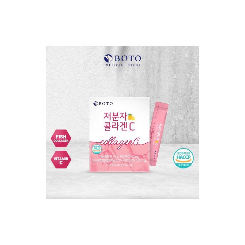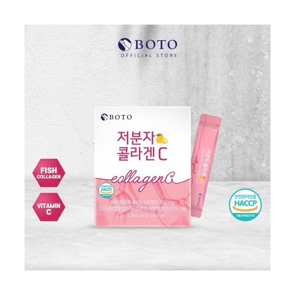 Boost your beauty from within with [BOTO] Low Molecular Collagen C! Each convenient stick delivers a powerful blend of low-molecular fish collagen, Vitamin C, probiotics, and hyaluronic acid to support healthy skin, hair, and nails.
