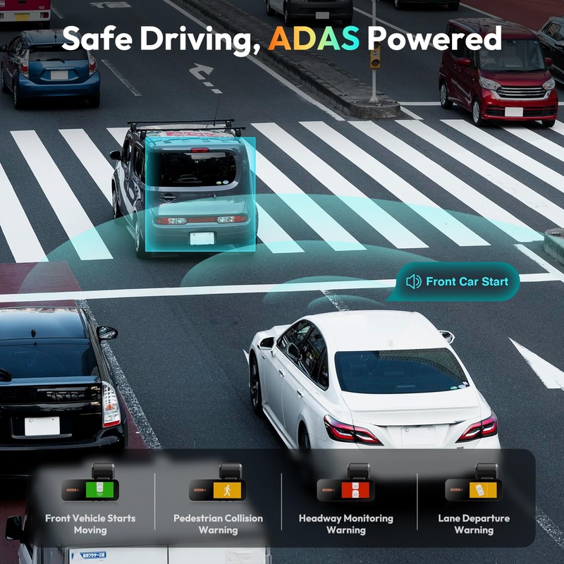 - ADAS--Advanced Driver Assistance Systems Driven by a 1.5T AI NPU chip and based on thousands of simulation experiments of real driving scenarios, it can provide real-time alerts for pedestrian collision, vehicle movement in front, lane departure and headway monitoring with an accuracy of up to 95%. Thanks to the ADAS features, family and friends will be more assured of your driving safety. You can also adjust the sensitivity. Better dash cam for uber drivers.