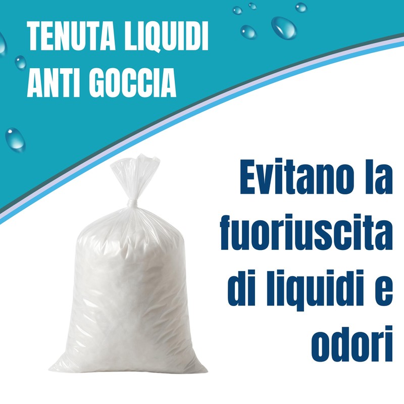 - Transparentes Design: Bottari 10 l transparente Säcke ermöglichen eine visuelle Identifizierung des Inhalts, besonders nützlich für Haushalt, Schule, Geschäft oder Mülltrennung. Die transparente Option ist auch ideal für Räume, in denen aus praktischen oder behördlichen Gründen eine Sichtbarkeit von Abfällen erforderlich ist.