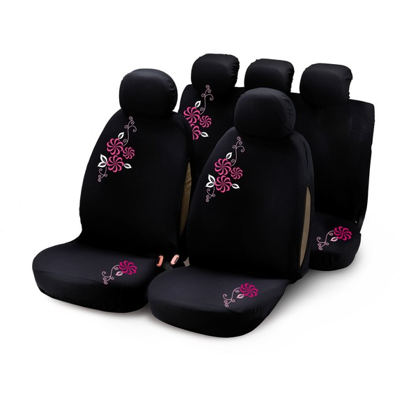 Bottari SpA 29010 My Flower Swivel Car Covers - Black/Pink (9 Pieces)