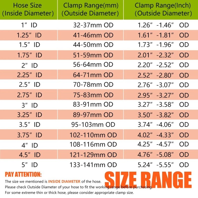 ATTENTION - Used for 1" ID hose, better to check your Hose OD to fit the working range before purchasing. For some extreme thin or thick hose, please consider appropriate clamp size.