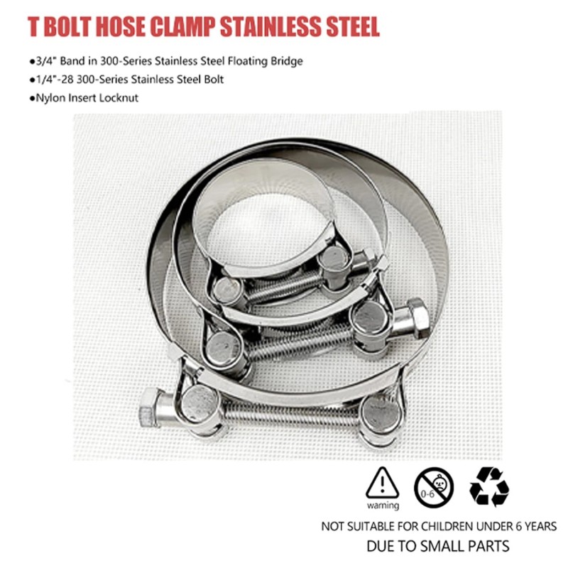 SIZE - 4pcs 1" T Bolt hose clamps,BOTTEN products set industry Standard with Premium Quality