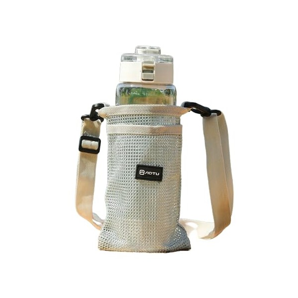 Bottle Cover Water Bottle Holder Mesh Cooler Pouch with Shoulder Strap 20cm x 11.5cm Gray Navy, gray