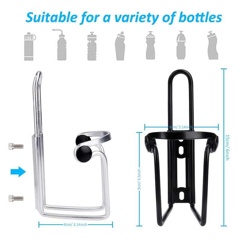 - UNIVERSAL BOTTLE HOLDER The bicycle bottle cage is suitable for most standard and oversized bike bottles with a size of 60 to 85 mm (2.4 to 3.3 inches). A secure and robust bottle attachment system ensures that the entire bottle is firmly in place when driving.