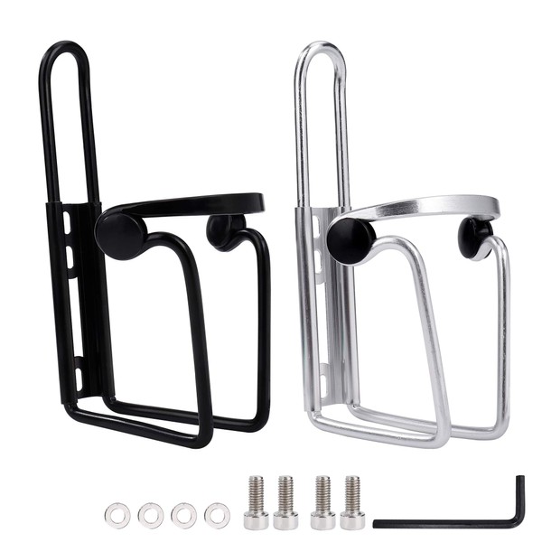 Bottle Holder Bicycle Ultralight Robust Aluminium Holder with Screws for Bicycles Mountain Bikes Wheelchair Black Silver Pack of 2