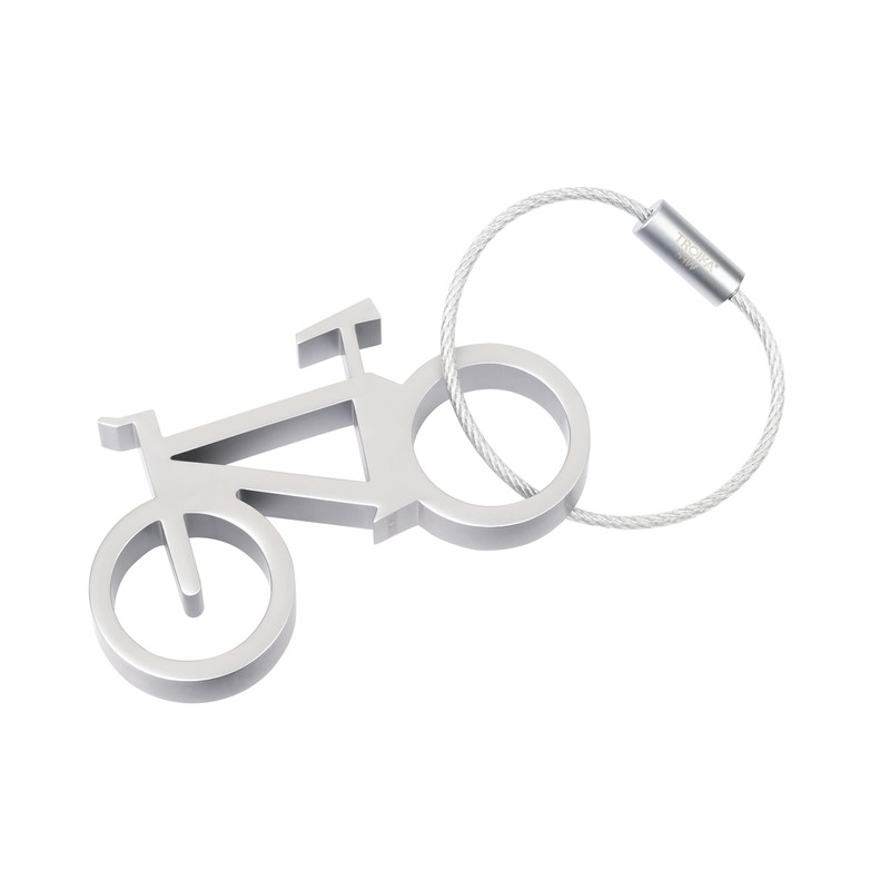 Bottle opener with keyring, bicycle – DRAHTESEL – aluminium – silver-coloured - TROIKA Original