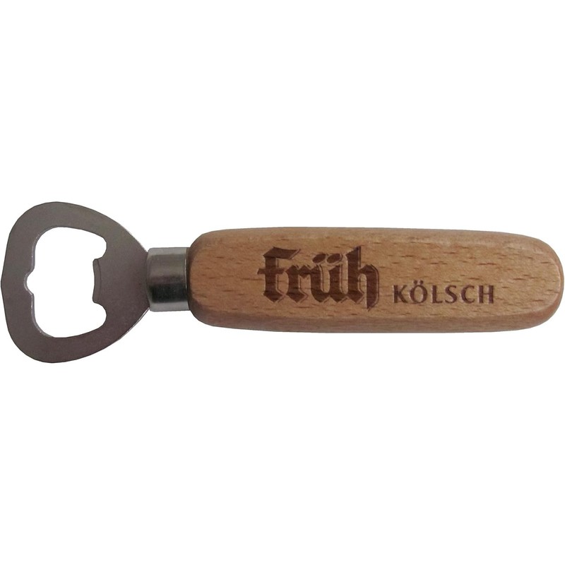- Design: high-quality bottle opener with traditional wooden handle and Früh Kölsch branding for authentic beer experience