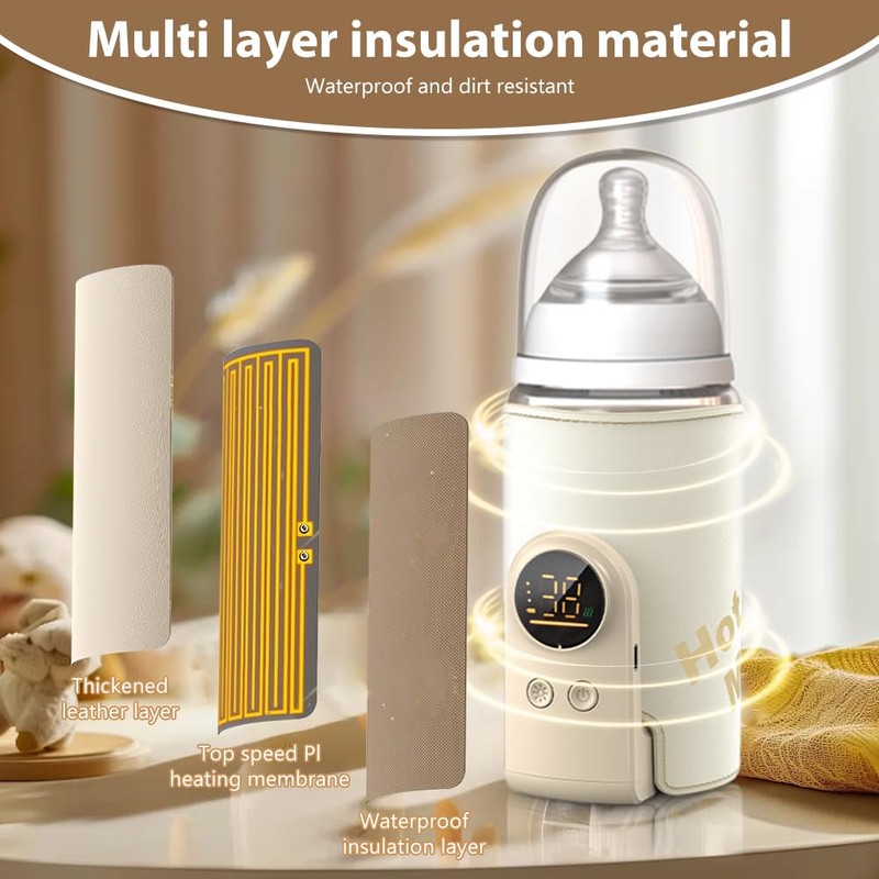 - Suitable for all bottles: the baby bottle warmer model is made of high-quality PU leather and waterproof fibre fabric. It is easy to clean: the PU surface can be wiped clean with a damp cloth. The inside is made of a high density BPA-free sponge layer that can be adjusted and suitable for different bottle shapes.