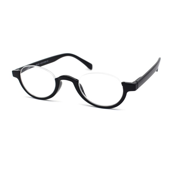 Bottom Half Plastic Rim Round Oval Powered Reading Glasses Black +1.25