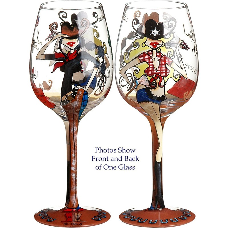 Bottom's Up 15-Ounce Wild Wild West Handpainted Wine Glass