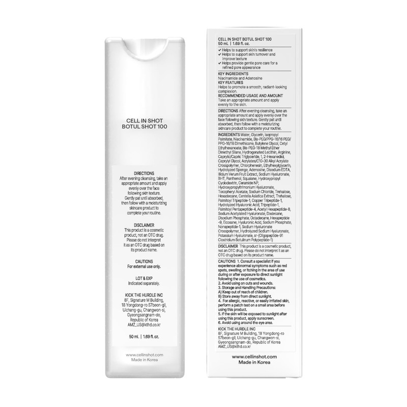 CELL IN SHOT BOTUL SHOT 100 - Korean Microneedling Skin Booster with Centella Asiatica, Hyaluronic Acid and BOP SOME for Daily Pore Tightening, 1.68 fl.oz (50 ml)