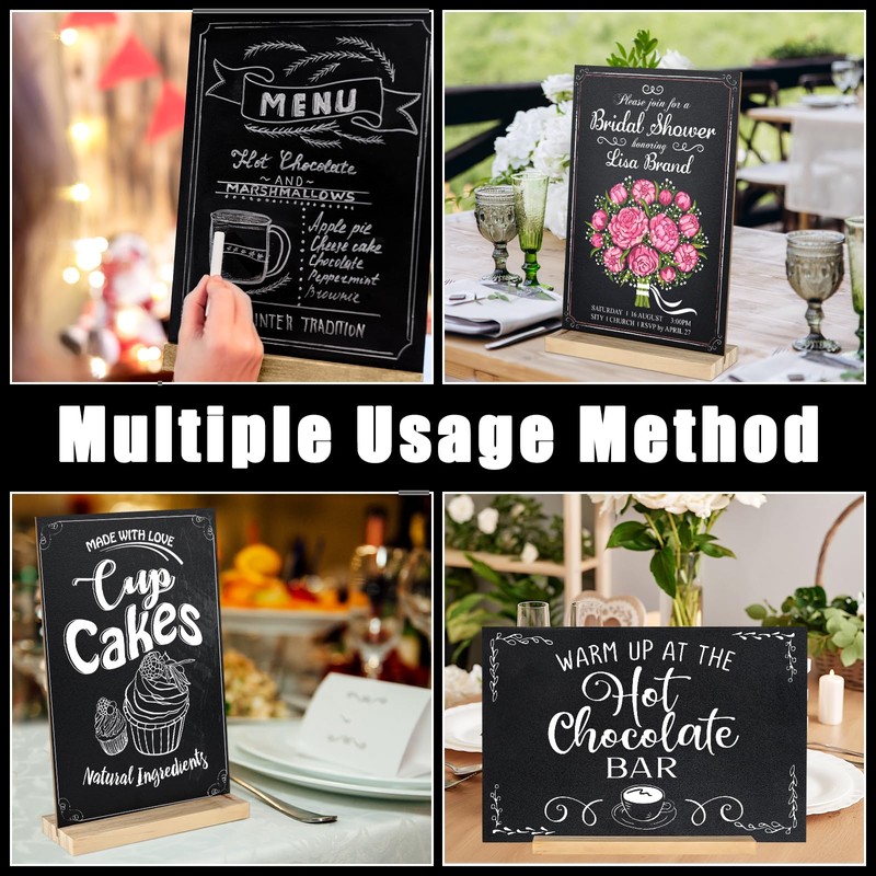 - Reusable: The tabletop chalkboard sign is easy to write on and clean, you can use chalk and erasable markers to write repeatedly, when you need to change the content, you can use a rag to erase the chalk and a damp cloth to erase the markers