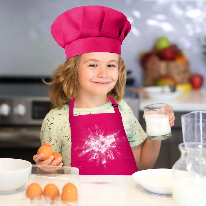 • Package Content The kids apron and chef hat set includes 1 apron and 1 chef hat. Our kids aprons come in a wide range of colors to choose from