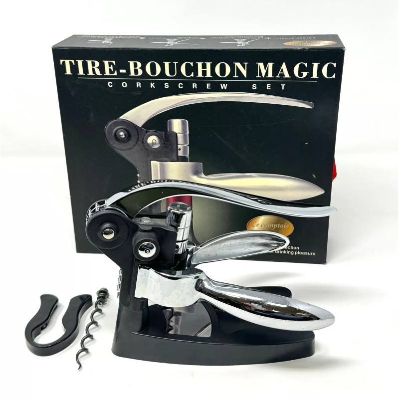 Bouchon Chrome Wine Bottle Opener Corkscrew wine opener Set Vertical Lever With Stand