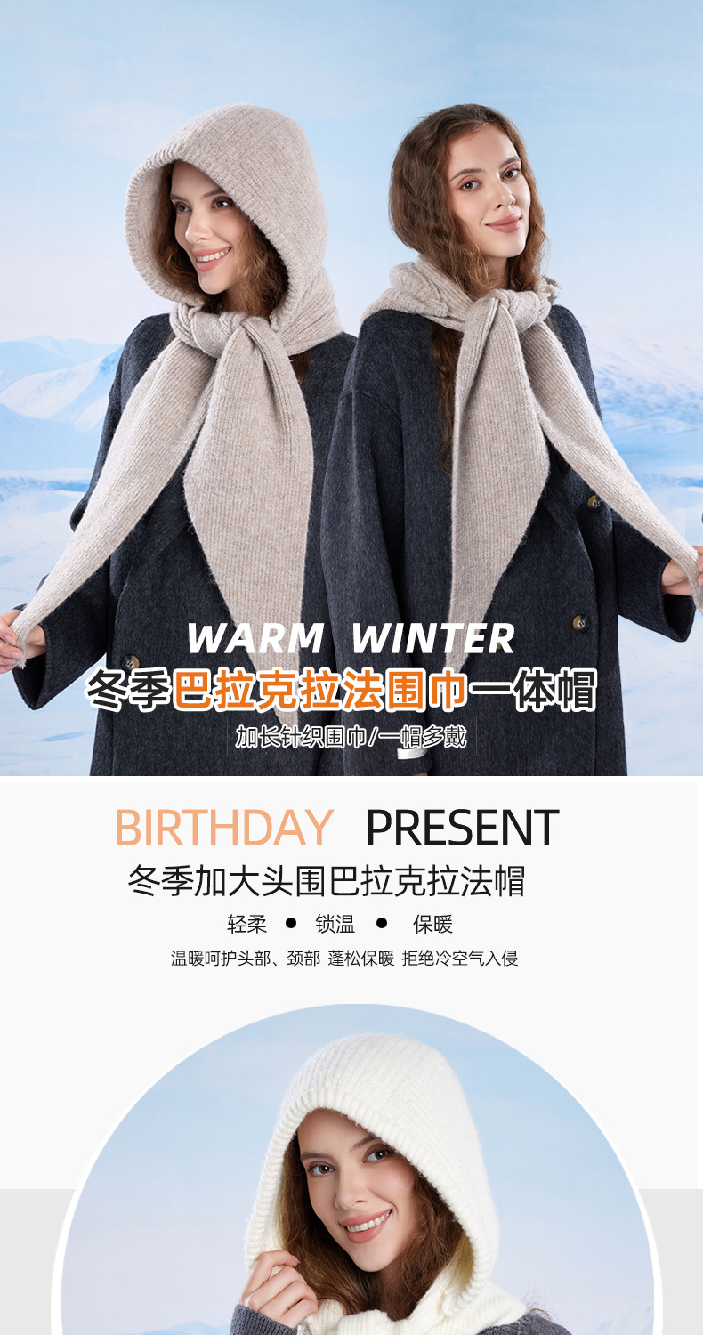 Boucle Balaclava Winter Warm Hat LF3639 One Size/Grey 3ea