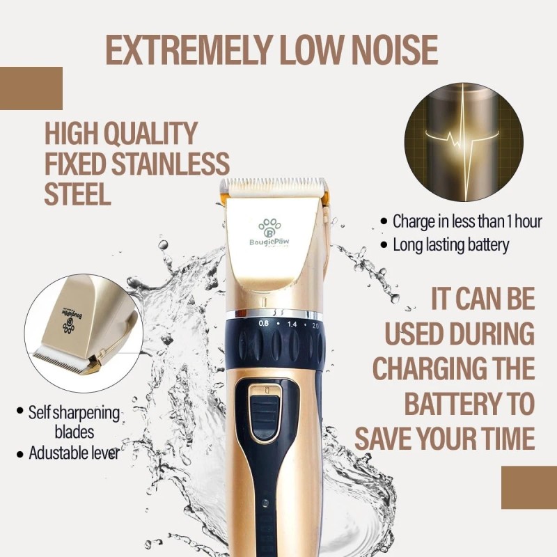 Bougiepaw Grooming Kit for Dogs at Home - Rechargeable Low Noise Cat & Dog Clippers for...