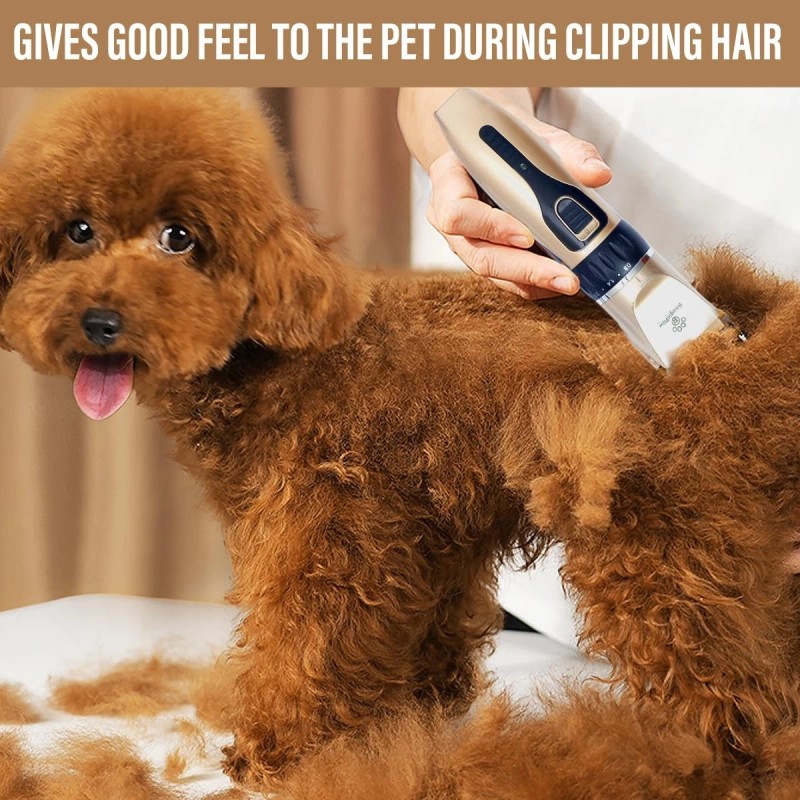 Introducing our premium quality dog hair trimmer with bath brush, the ultimate grooming solution for your furry friend. With our versatile and efficient pet grooming kit, you can easily cut and style your dog's hair, ensuring that they always look their best. Our cordless dog grooming clippers for styling thick hair provide convenience and freedom of movement, allowing you to brush your pet with comfort. Designed for small and large dogs, our pet clippers are gentle and safe, ensuring a stress-free bathing experience. Whether you need to trim your dog's hair or give them a complete makeover, our dog grooming kit has got you all covered. Say goodbye to expensive salon visits and hello to professional results at home. Get your hands on our dog hair clippers today and experience the difference!