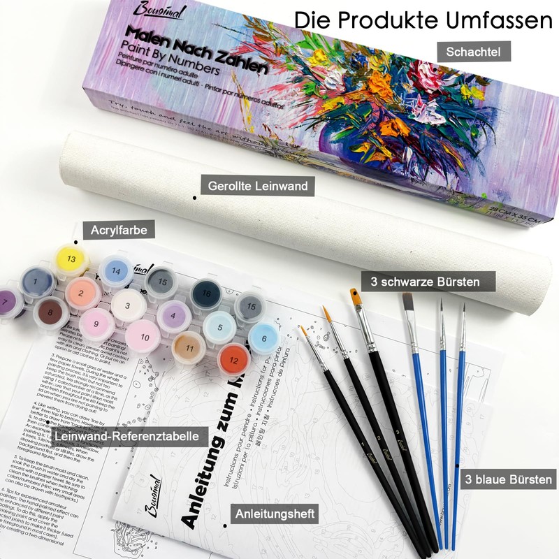 Bougimal Paint by Numbers Adult Landscape without Frame Including Brush and Acrylic Paints - 28 x 35 cm, Colourful Flowers 3