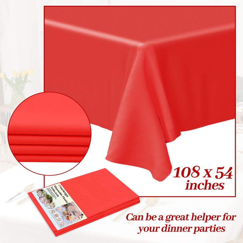 - Package: you will receive 4 red disposable tablecloths, which are enough to meet your needs for Valentine's Day, Easter, Halloween, Thanksgiving, graduation, Christmas, New Year, and other party occasions. Help you create an impressive romantic party