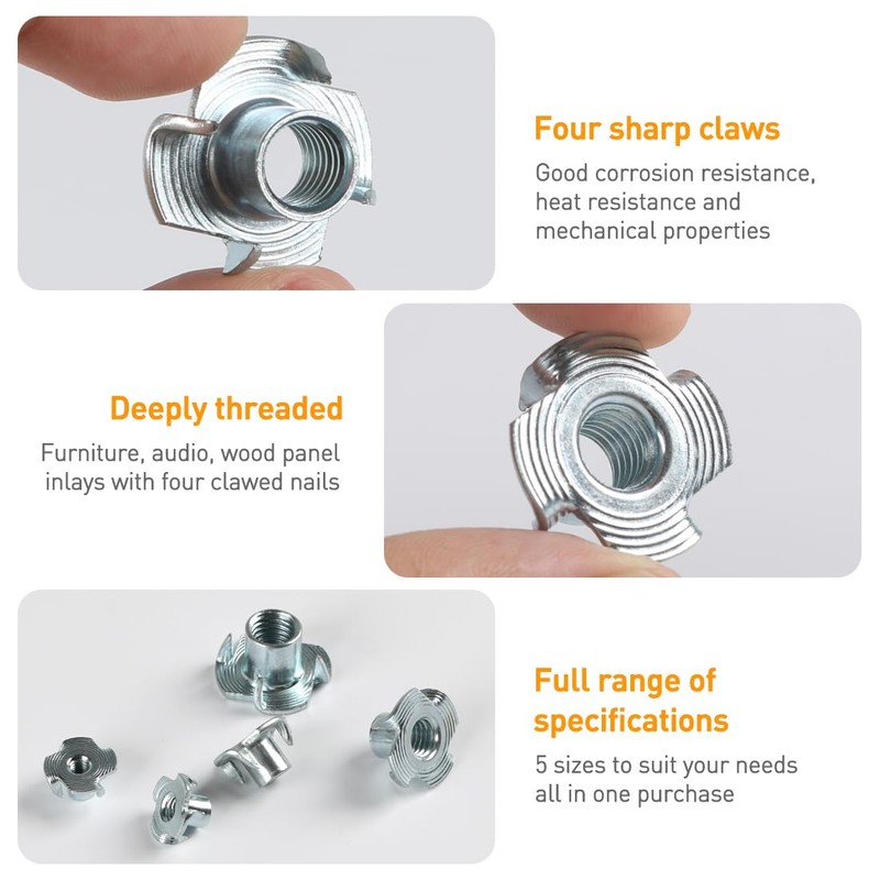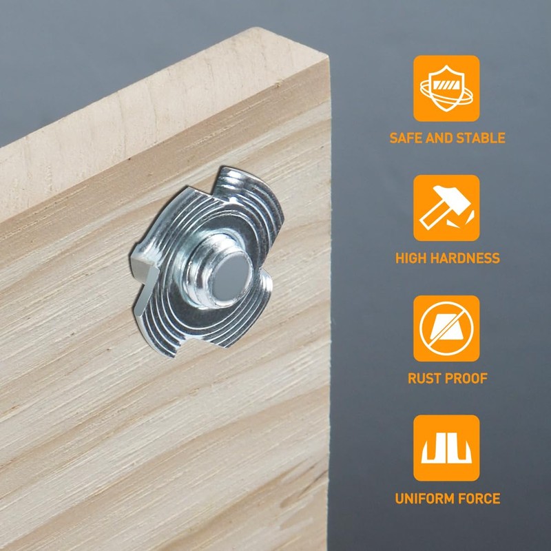 • 【Hochwertige Einschlagmuttern Holz】Hergestellt aus hochwertigem Kohlenstoffstahl, die Oberfläche ist verzinkt, hohe Härte, rost- und korrosionsbeständig. Die Gewinde sind scharf und präzise, gleichmäßig belastet und widerstandsfähig gegen Abrutschen.