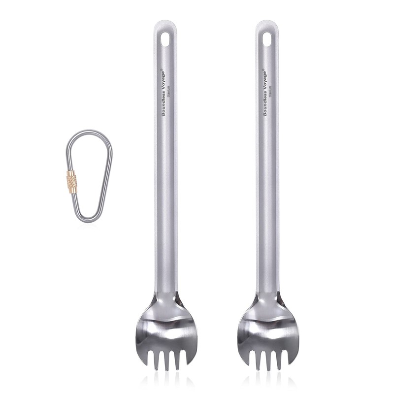 Boundless Voyage Outdoor Titanium Long Handle 220mm Spork Polished Titanium Spork Straight Handle Ultralight(2pcs)