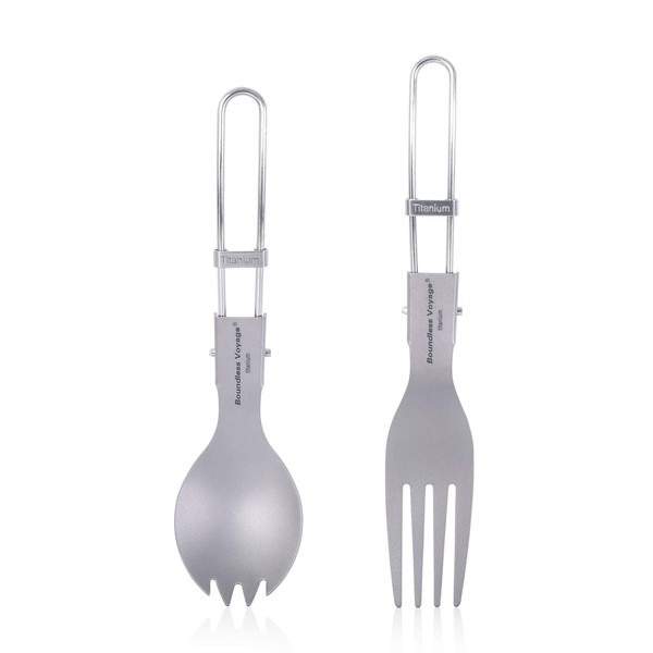 Boundless Voyage Ti1025T Titanium Fork Preparing Spoon, Foldable, Ultra Lightweight, Rust Free, Cutlery, Outdoor, Camping, Tableware, Picnic, Barbecue (Fork/Preparing Spoon)