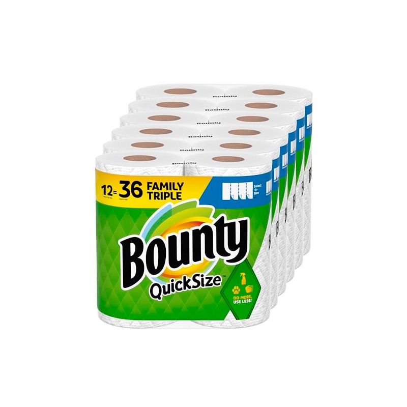 - Pack contains 12 Family Triple Rolls of Bounty white Quick Size Paper Towels