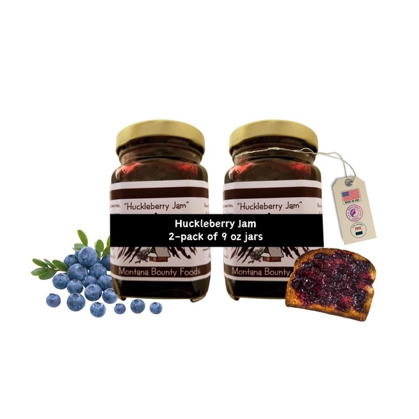 Bounty Foods Huckleberry Jam 2 Pack of 9 oz Jar - Montana Wild Grown Berries for Breakfast, Desserts, Toppings, Pie Fillings