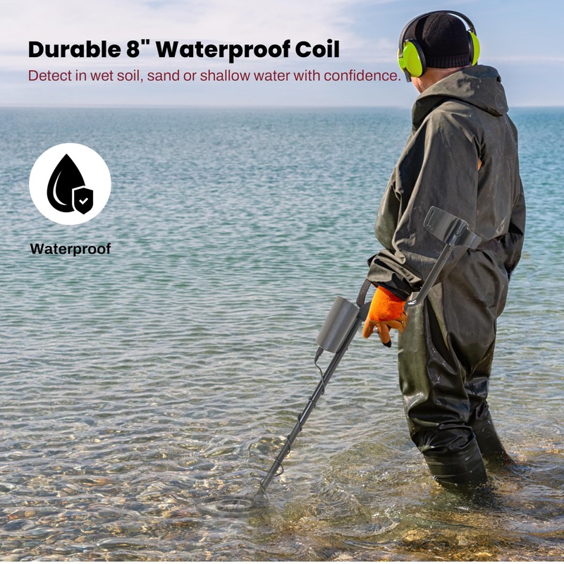 - Waterproof 8-Inch Coil: The 8-inch waterproof coil offers versatility, allowing you to detect treasures in wet environments, including near water or damp soil, while maintaining durability.
