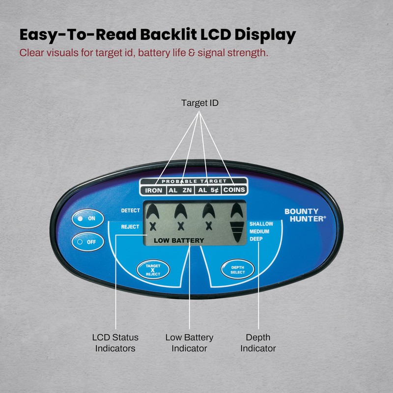 - Clear LCD Display for Easy Detection: The easy-to-read LCD display ensures visibility from a distance, providing key information like signal strength and target identification, making treasure hunting simpler.