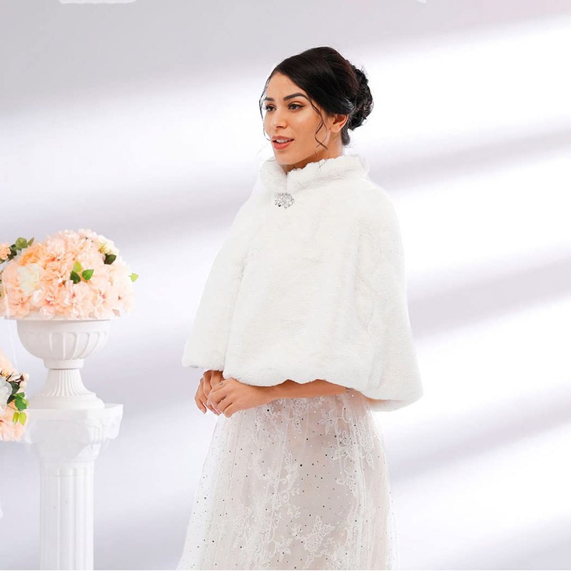 - Material:This Bridal shawls are made of high-quality faux fur,85% Polyester 15% Acrylic.It doesn't come off easily,very warm, and it makes you beautiful.
