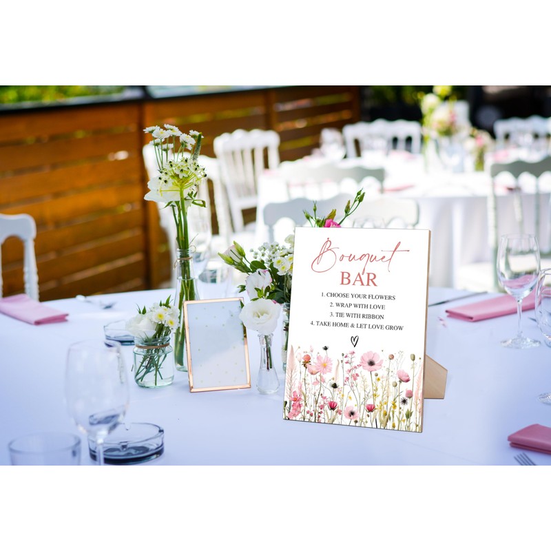 Bouquet Bar Sign, Pink Flower Style Wooden Sign With Stand, Flower Bar Supplies, Bridal Shower Decor, Wedding Reception Decorations, Bridal Shower Centerpieces For Tables, Engagement Party Decor-5