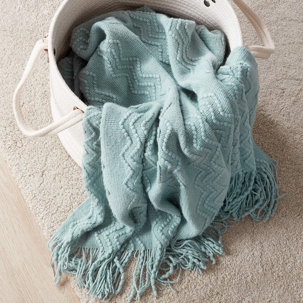 BOURINA Textured Solid Soft Sofa Throw Couch Cover Knitted Decorative Blanket,Aqua, 127x152cm