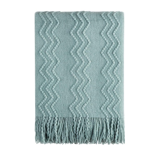 BOURINA Textured Solid Soft Sofa Throw Couch Cover Knitted Decorative Blanket,Aqua, 152x203cm