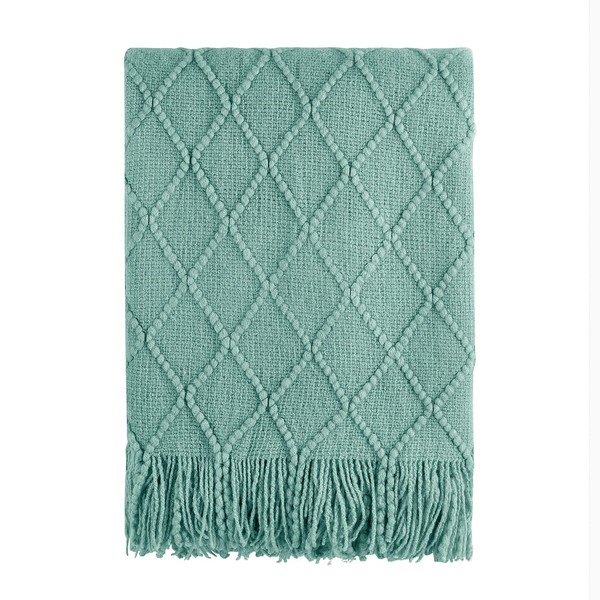 BOURINA Textured Solid Soft Sofa Throw Couch Cover Knitted Decorative Blanket (Dark Cyan,50x60 inches)