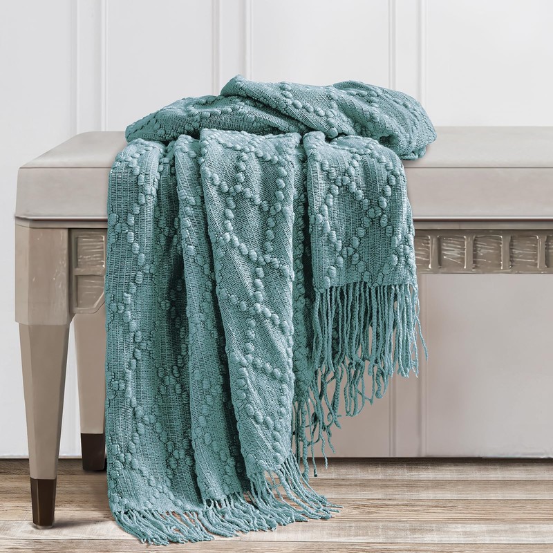 BOURINA Throw Blanket Textured Solid Soft Throws and Blankets for Sofa or Bed Knitted Decorative Blanket 127x178cm Blue