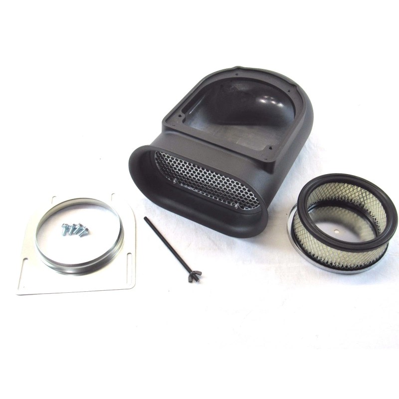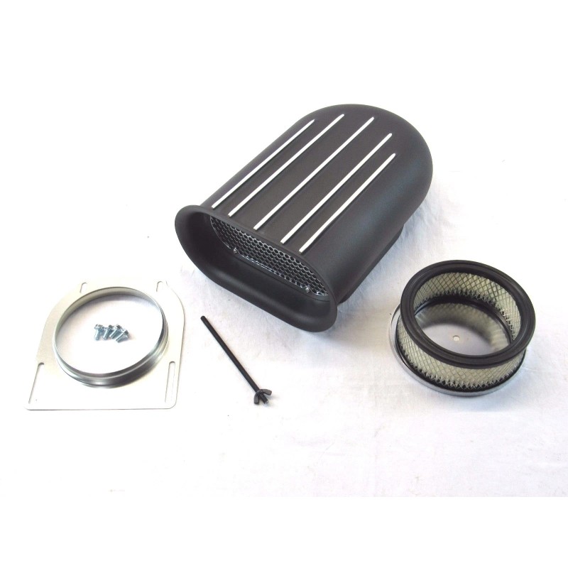 This listing is for a brand new Finned Aluminum Hood Scoop Kit.  This scoop will fit almost any 4 barrel carburetor with the 5 1/8" opening (includes Edlebrock, Holley, Rochester, Carter, and more).  It has all the hardware needed for installation: