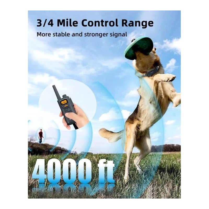 【Extended 4000FT Range, Indoor & Outdoor Versatility】 Our dog training collar utilizes industry-leading technology, boasting an impressive 4000ft control range, nearly three times more than other collars. Its stable and strong signal ensures precise command delivery, allowing reliable and effective training in backyards, parks, beaches, woods, and open fields.
