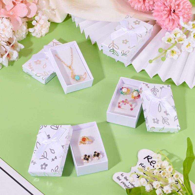 - Wide Application: These present packing boxes are perfect for storing and displaying earrings, necklaces, rings, and bracelets. The simple flower pattern and ribbon bow add a charming appearance to the display, small and delicate, simple and atmospheric