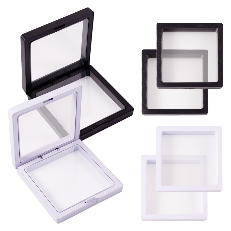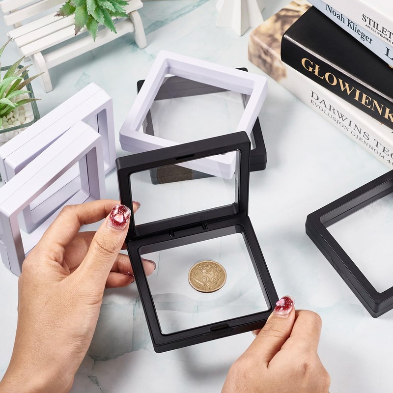 3D Floating Frame Display Case Coin Display Holder Stands PE Film Jewelry Box for Ring Necklace Bracelet Earring Jewelry Decoration (6Pcs) Color: Black & White Size: 89x89x2mm/90x90x2mm; inner diameter: 75x75mm.